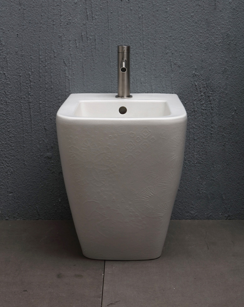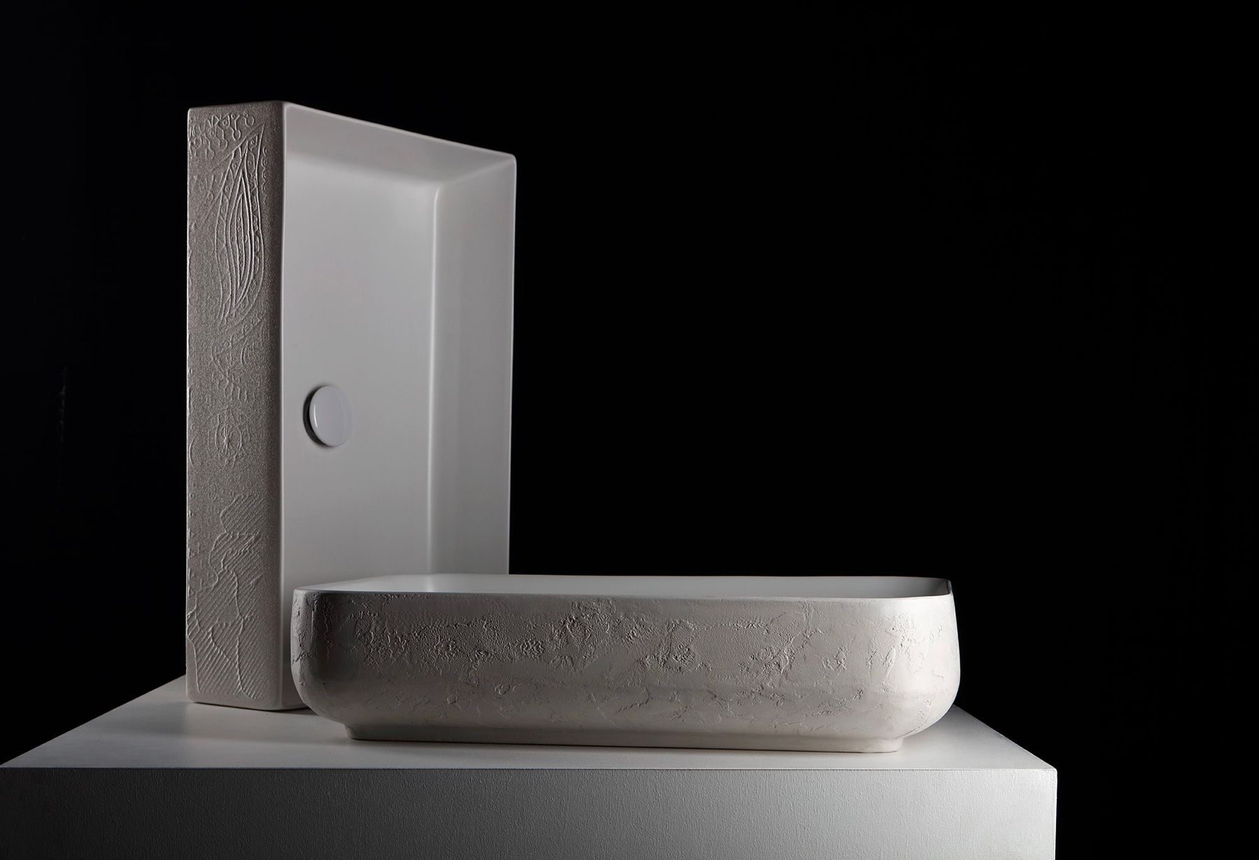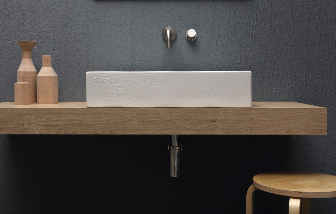 Luca Papini presents the new Macramè decoration designed for washbasins and sanitary ware. The bathroom becomes a place full of inspiration and contamination that is not limited to functionality, but becomes an integral part of the house. An environment in which to express oneself and carve out precious moments. The complexity, the added value of this project for Sdr Ceramiche, lies precisely in the transposition of the texture on a smooth and flat surface such as that of the sanitary ware and the washbasin. Macramè, I thought of it not as an end in itself decoration, but as a real embroidery, a unique and coordinated effect.